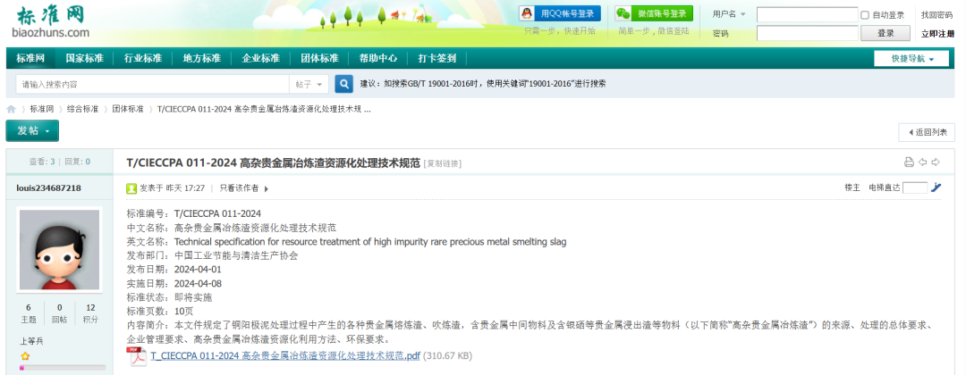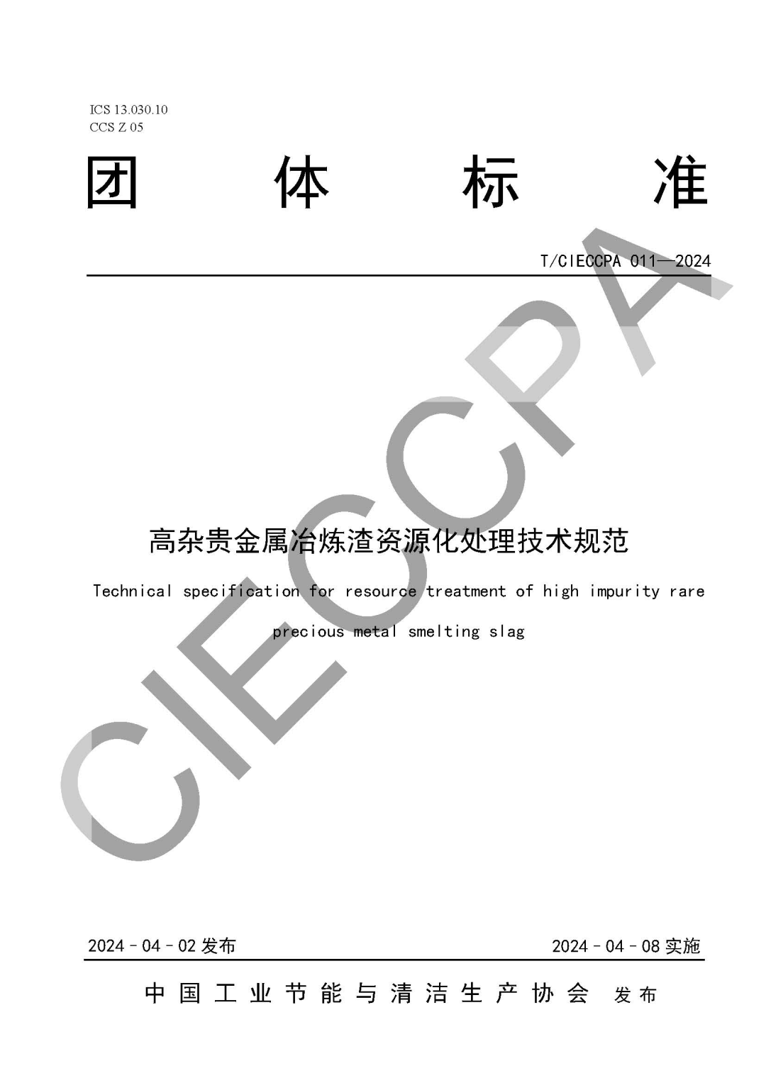 为提高矿产资源利用效率、保障国家资源安全,清新环境子公司宣城市富旺金属材料有限公司(以下简称“宣城富旺”)积极参编《高杂贵金属冶炼渣资源化处理技术规范》(T/CIECCPA 011-2024)(以下简称“技术规范”)团体标准。该标准由中国工业节能与清洁生产协会于3月16日发布,4月2日起正式实施。